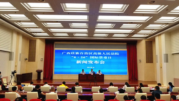 6月25日,自治区高级人民法院召开新闻发布会,通报2017年以来全区法院毒品犯罪审判工作情况和参与禁毒工作情况,并公布五起重大毒品犯罪典型案例。