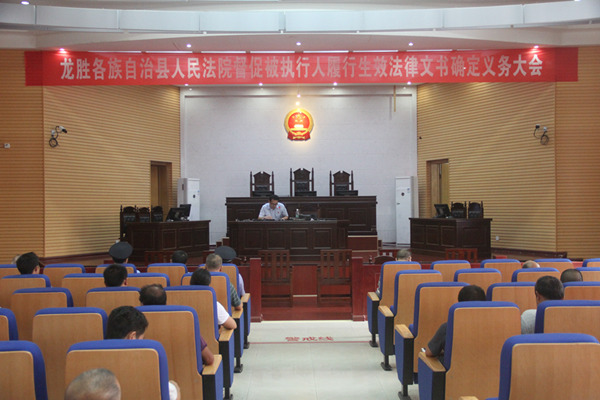 继返乡开庭的杨某被拘后,龙胜法院执行局摩拳擦掌、持续发力于2018年6月20日又将一“老赖”石某拘传到庭,恰逢当日龙胜法院召开敦促被执行人履行生效法律文书确定义务大会,为更好的起到警示、威慑作用,石某的拘留决定书在大会上向与会的执行案件当事人当众宣读。这杀鸡儆猴的一招成效显著,会后到场的被执行人纷纷表示愿与其案件的申请执行人协商和解。